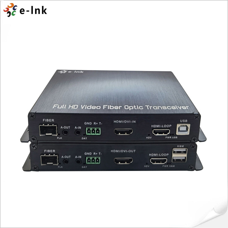 المسافات عبر كابل ألياف ضوئية واحد، يدعم دقة عالية تصل إلى 1080P، KVM، RS232،