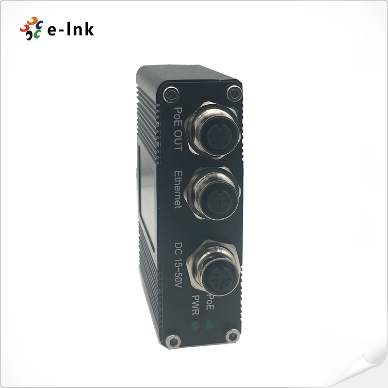 EN50155 محقن PoE صناعي بمنفذ واحد 10/100/1000M M12مدخل طاقة 12~48VDC |